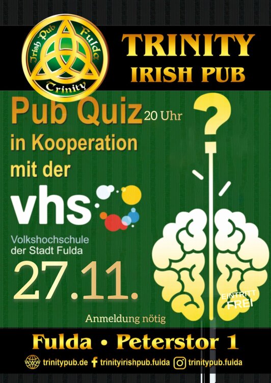 Tel. +49 661 9525 0111 : info@trinitypub.de